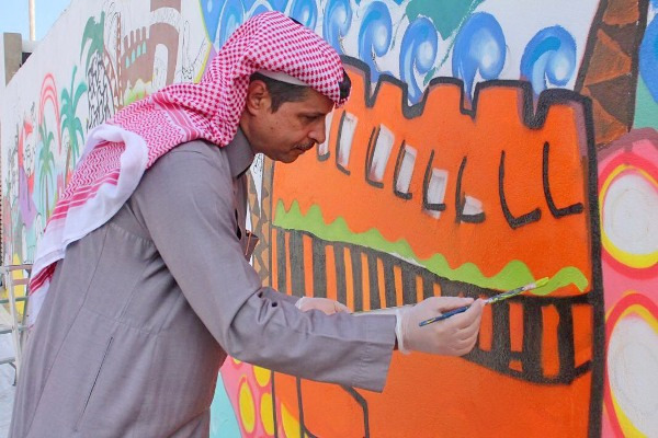 المقهوي يشارك في جداريات ”ديرتنا ملونة“ ويدعو المجتمع للتفاعل معها