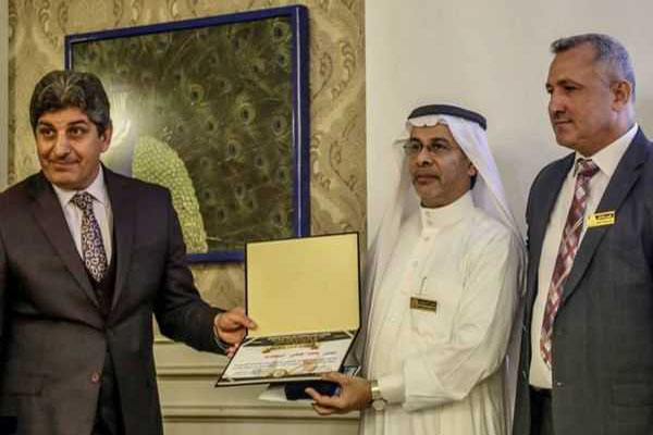 واستلم المصلي الذي عين رئيس وفد المملكة وعضو لجنة التنظيم في الملتقى درع التكريم لحصول المملكة اكثر الهدايا واقامة الورش والمحاضرات ومن ضمنها محاضرة المصلي «فهم اللوحة التشكيلية» بحضور رئيس الملتقى ونخبة من الفنانين والشعراء.