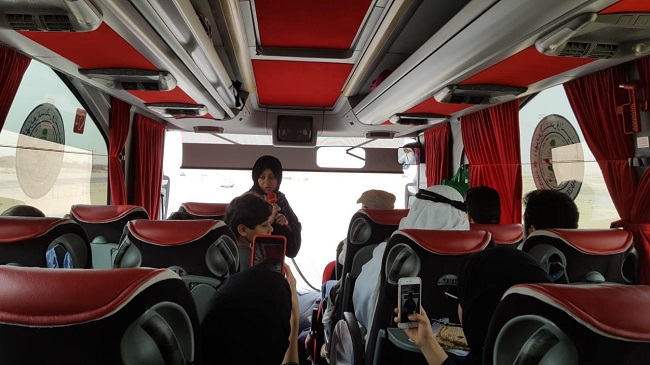وسيطرت النساء على الحضور؛ حيث شكلت نسبة 90%من الركاب؛ في القافلة التي كانت أشبه بالملتقى الشبابي والذي ضم نخبة من المثقفين والمهتمين بالشأن الفكري والعلمي والثقافي.