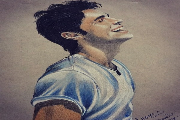 ويؤمن بأن الرسم عالمٌ جميل وكل مايحتاجه هو القلم وتثبيت الورقة واطلاق طاقته الفنية في رسم الطبيعة الصامتة وبعض الشخصيات المشهورة، التي يرسمها بدافع الإعجاب بها أو بفنها مثل: الممثل الراحل عبدالحسين عبدالرضا، والشخصية الشهيرة «مستر بن» والممثل الأمريكي مورجان فريمان والملك فيصل بن عبدالعزيز وشخصية هاري بوتر, وكذلك الرادود باسم الكربلائي والمنشد صابر المضحي.