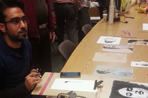 رسّام يجذب طلاب جامعة أنديانا الأمريكية بلوحاته