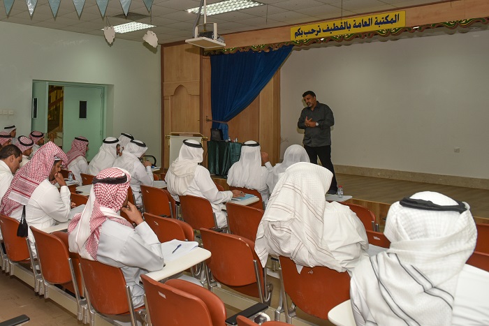 نظمت المكتبة العامة بالقطيف الخميس ورشة عمل بعنوان ”الادارة الصفية“ بمشاركة مجموعة من المعلمين، قدمها الاستاذ والمحاضر في جامعة الملك سعود مازن الجصاص.