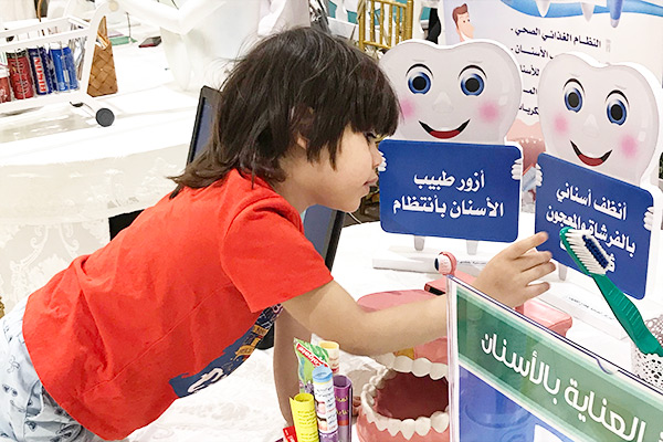 وشملت الاركان ركن طرق العناية بالأسنان، ركن الغذاء الصحي، ركن طرق تطبيق الإجراءات الوقائية، ركن فحص الأسنان، ركن الاستشارات الطبية.