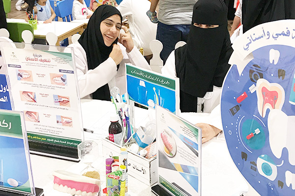 وتضمنت الفعاليات عددا من الأركان التي تخص رعاية الأسنان وما تضمنته من مجسمات ونشرات تثقيفية، هدفت إلى تعريف الزوار على الطرق والوسائل الكفيلة بالحفاظ على أسنان سليمة من أهمها غسل الأسنان واللثة واللسان قبل وبعد النوم والامتناع عن التدخين كعدو رئيسي للأسنان واللثة والابتعاد قدر الإمكان عن السكريات والحلويات المصنعة بشكل عام خصوصا قبل النوم والاستعاضة بها بالفواكه الطبيعية والالتزام بالكشف الدوري من خلال الفحص وتنظيف الأسنان واللثة.