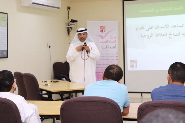 أقام مركز البيت السعيد بصفوى محاضرة بعنوان ”سيمفونية السعادة الزوجية“ قدمها الأخصائي النفسي ناصر الراشد يوم الثلاثاء في مقر المركز وحضرها 85 شخصا من الجنسين.