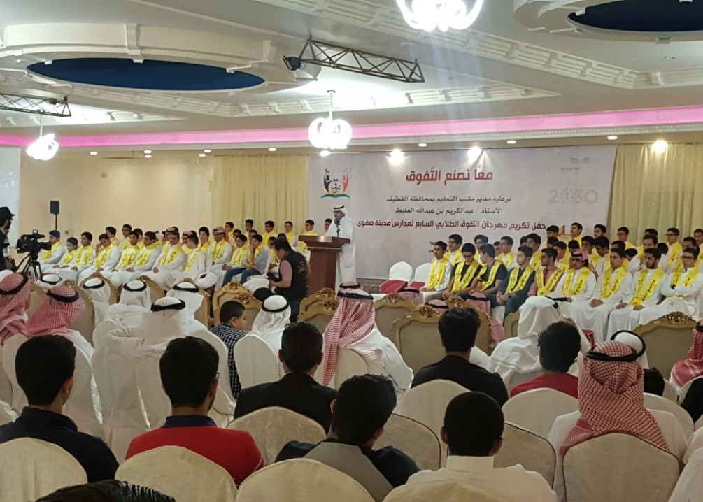 زفت مدينة صفوى 76 طالبا في حفل التفوق الطلابي السابع لمدارسها والذي حمل هذا العام شعار«معا نصنع التفوق»، وبرعاية مدير مكتب تعليم القطيف عبد الكريم العليط، وحضور جمع من رؤساء ومديري الإدارات الحكومية والمؤسسات الاجتماعية، والمشايخ، وقادة المدارس، والأعيان، والتربويين، وأولياء أمور الطلاب المتفوقين، والإعلاميين.