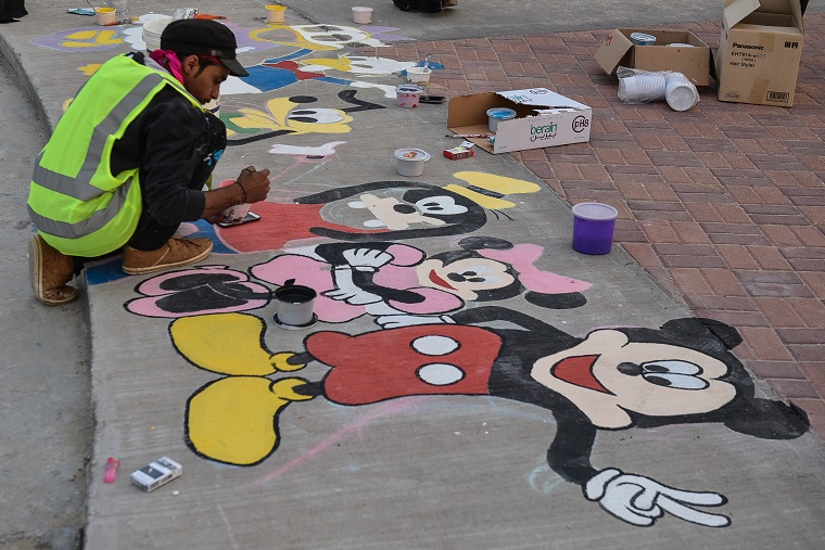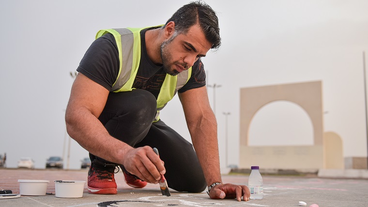 وتابعت ”نواجه صعوبة الرسم على الأرض بسبب عربات الأحصنة، وبعد المسافات بين المتطوعين“.