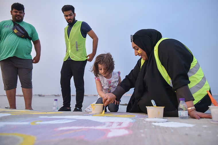 وذكرت قائد فريق all hands التطوعي غدير البراهيم أن الكثير من مرتادي الكورنيش شاركوا في في الرسم وتفاعلوا مع اللوحات،