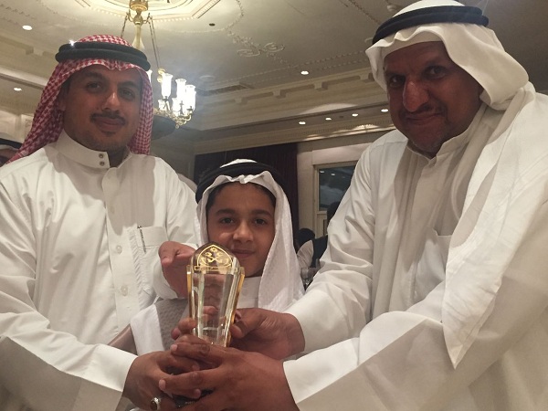 كرم جامع السويدان القارئ موسى السادة بمناسبة حصوله على المركز الأول في جائزة السويدان لفرع التلاوة للمرحلة الإبتدائية العام الماضي والتي تقام على مستوى مدارس المنطقة الشرقية.