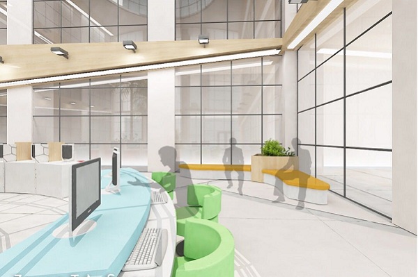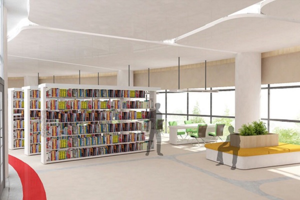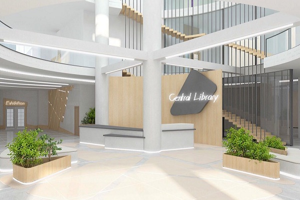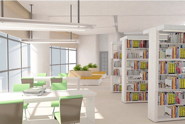 ووضعت المصممة زينب السلطان تصورًا للمكتبة عبر عدة تصاميم هندسية وديكورات.