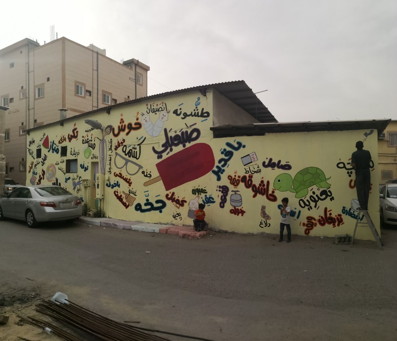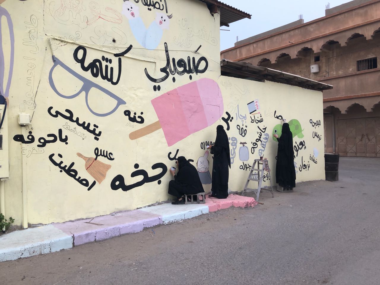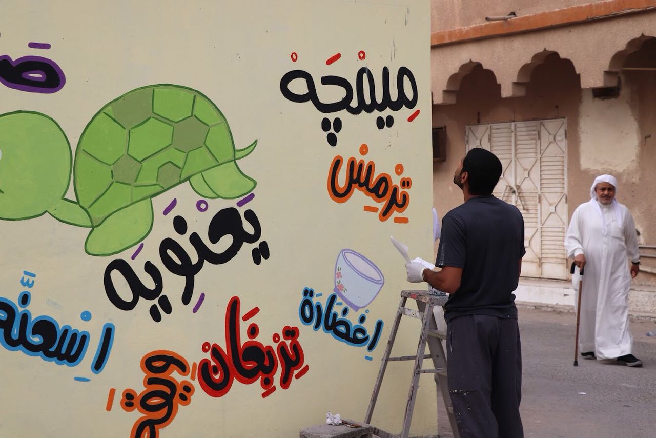 «صاخوب» تثير استفهام الجيل الجديد.. وتخطها ”ديرتنا ملونة“ على جدارية بصفوى