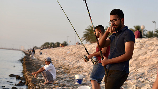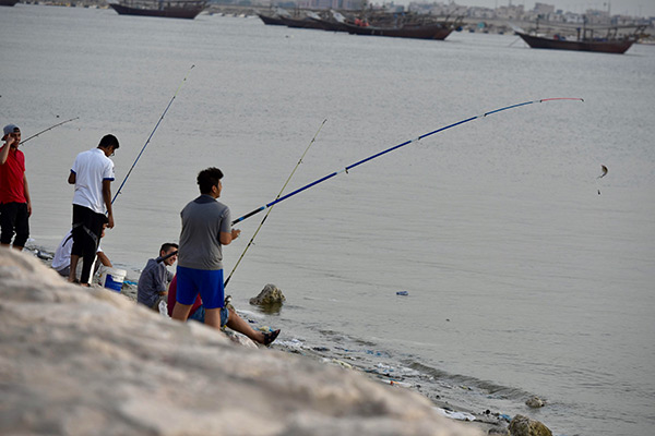 وتزدحم الواجهات البحرية في المحافظة بالشباب والصغار الذين يمارسون الصيد في جو يسوده الأنس والترويح عن النفس والمتعة.