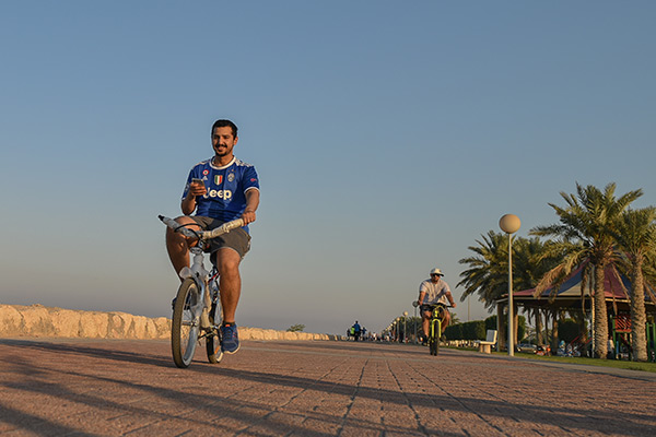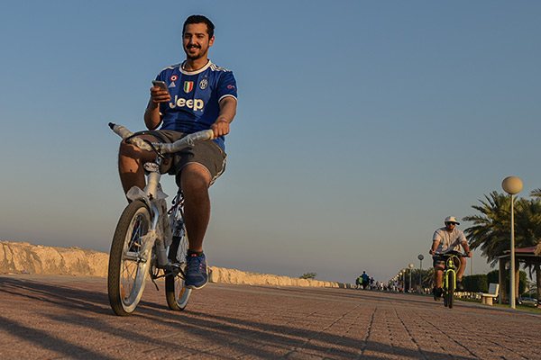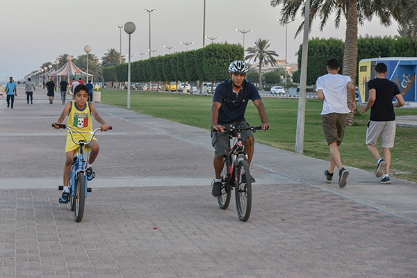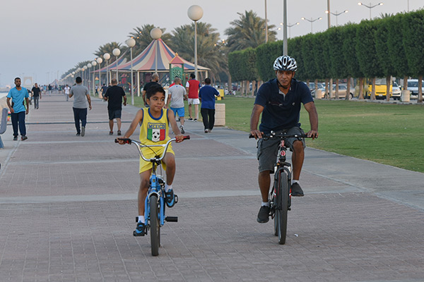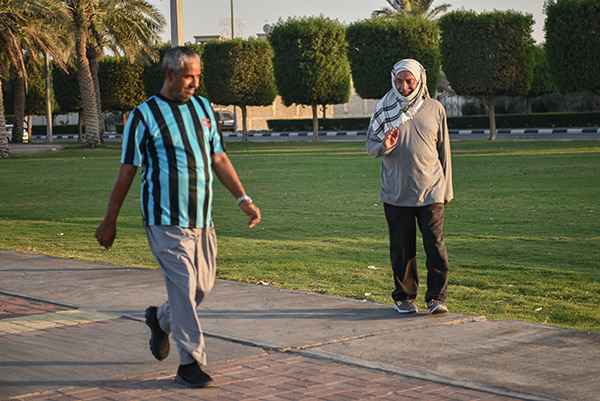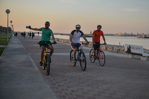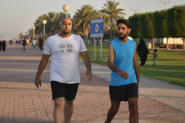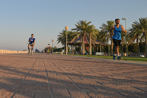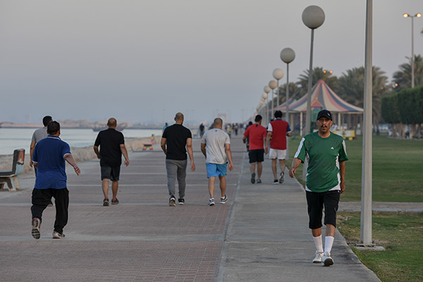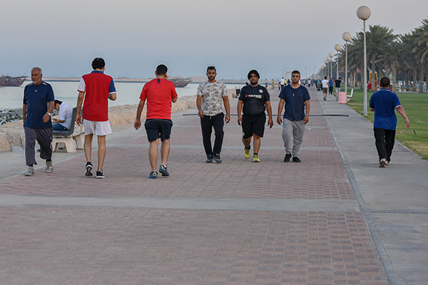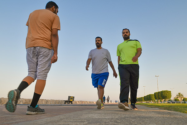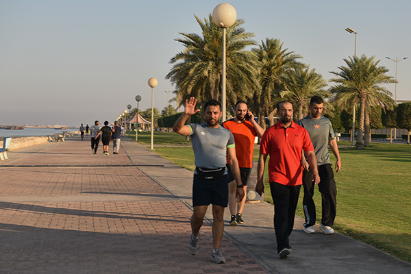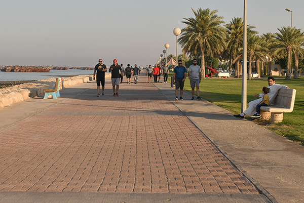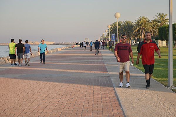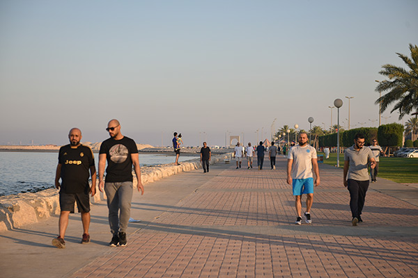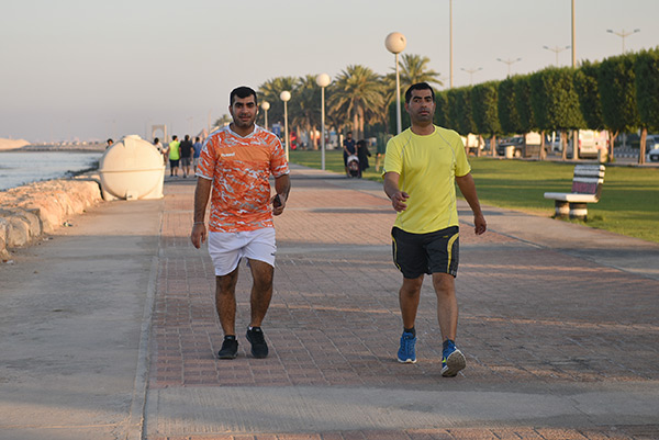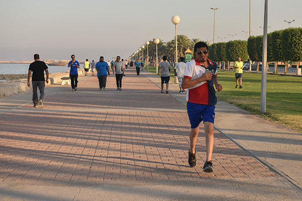 وقال سعيد الجاسم إن رياضة المشي في الكورنيش أفضل من الممارسات في الصالات الرياضة، لاسيما أنها تمتاز بكونها تمارس في الهواء الطلق.