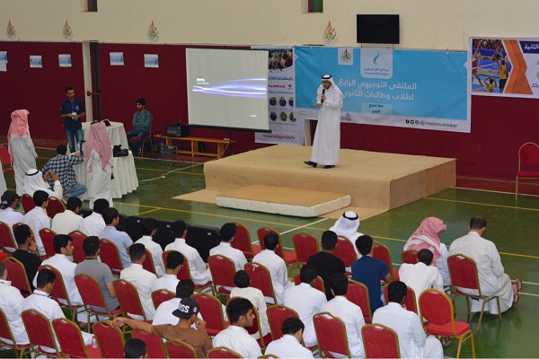 وتوجه الطلبة بعد ذلك إلى قسم الأركان الخاصة بالتخصصات والجامعات والكليات حيث أتيحت لهم فرصة الاستفادة من وجود عدد كبير من طلبة المرحلة الجامعية من مختلف التخصصات للاستفادة من تجاربهم الدراسية وتوجيه الأسئلة المباشرة لهم.