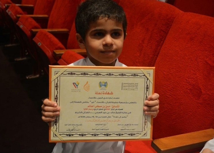للسنة الخامسة على التوالي يتفوق أبناء صفوى في مسابقة الحفظ والتلاوة التي يقيمها نادي الجيل بالأحساء لجائزة الشيخ خالد بن عيد العرجي «مزامير آل داوود 5» بالتعاون مع جمعية تحفيظ القرآن بالأحساء