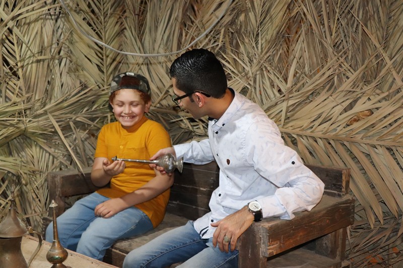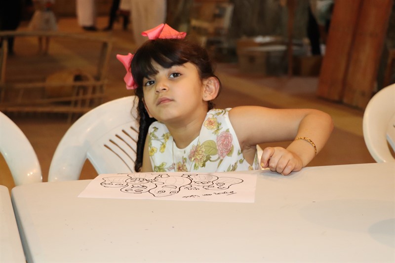وتوزع المحتفلون بين عدة أركان منها الضيافة وركن الهدايا والمسابقات والركن التراثي الذي يحتوي الأدوات القديمة والسعف والمشغولات اليدوية.