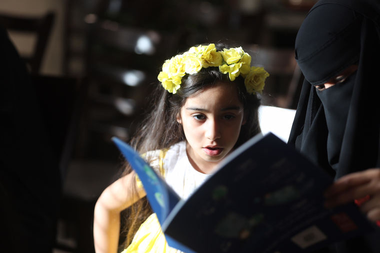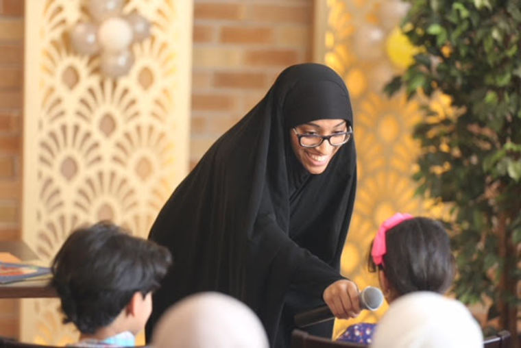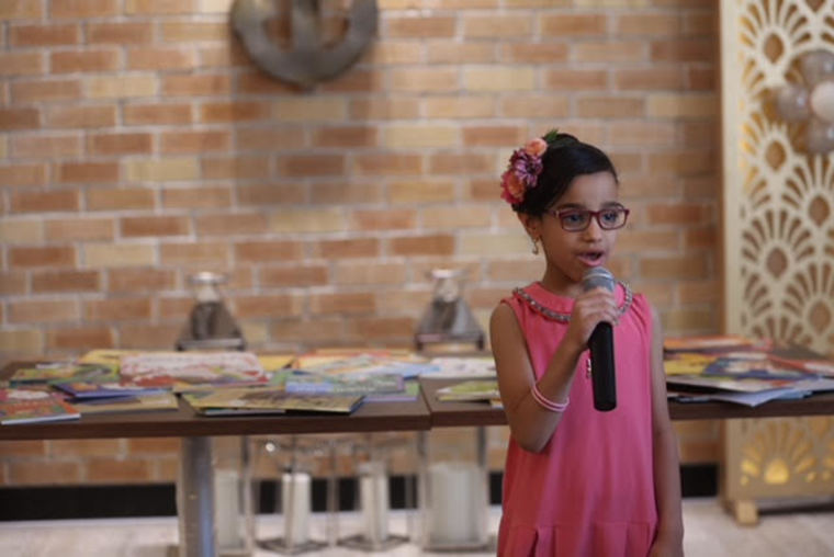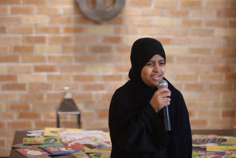 وألقت الشاعرة الناشئة سارة اليوسف قصة قصيرة تعزز قيم العطاء والوقوف مع الفقراء والمحتاجين، خاصة في الأعياد.