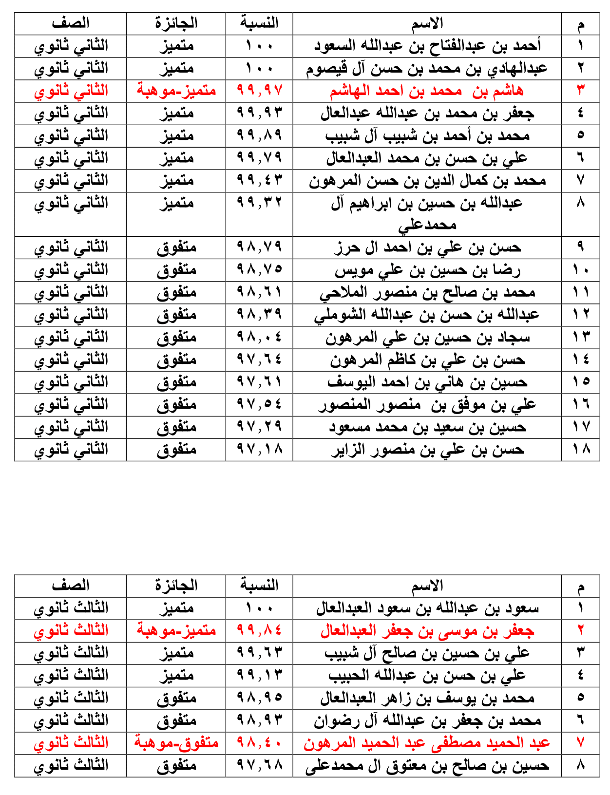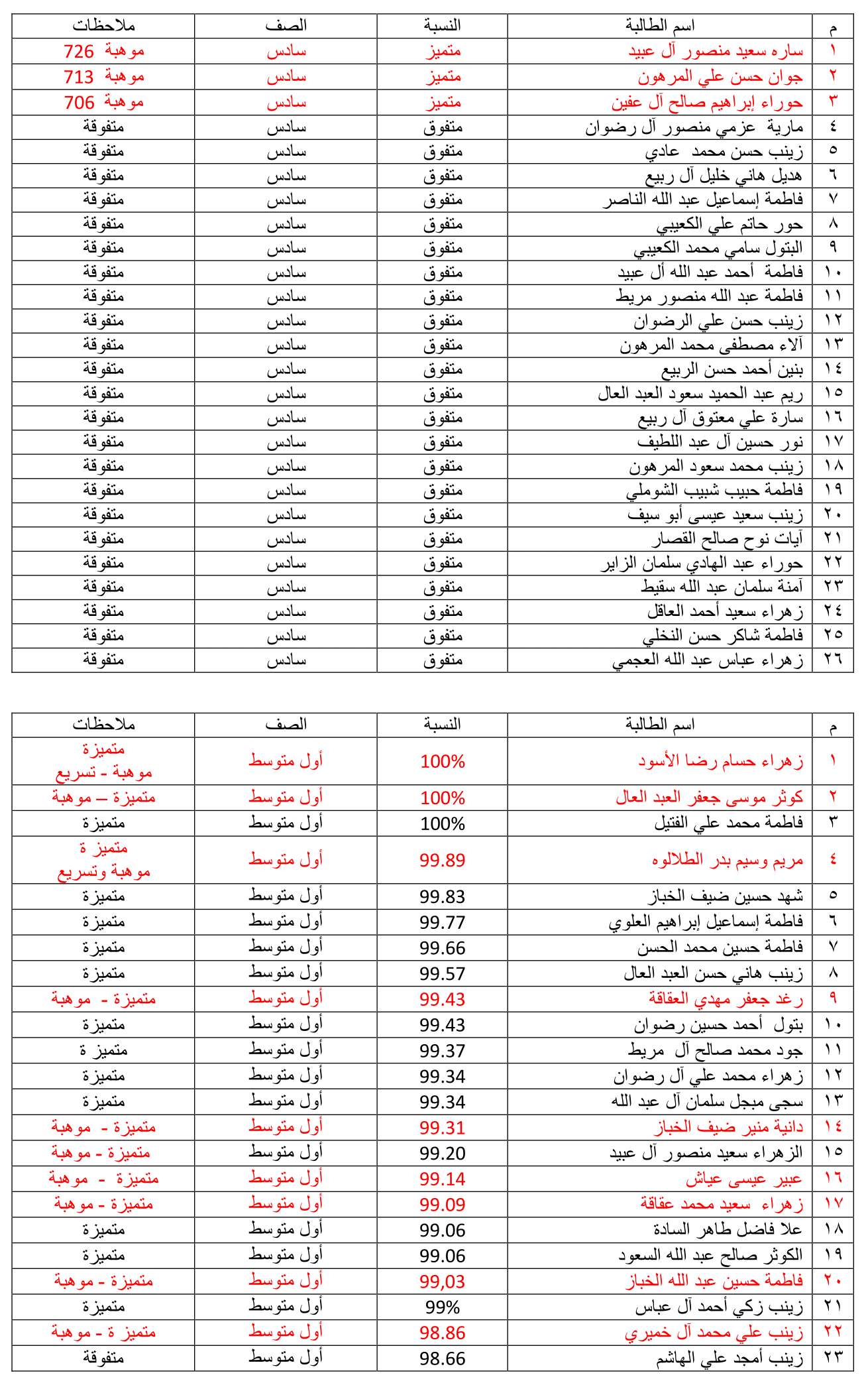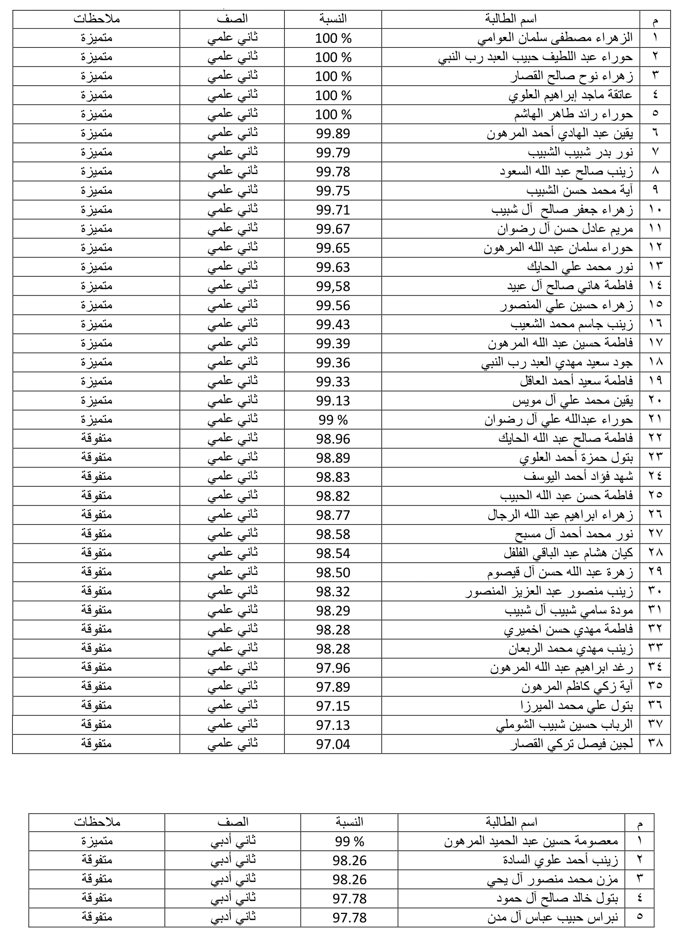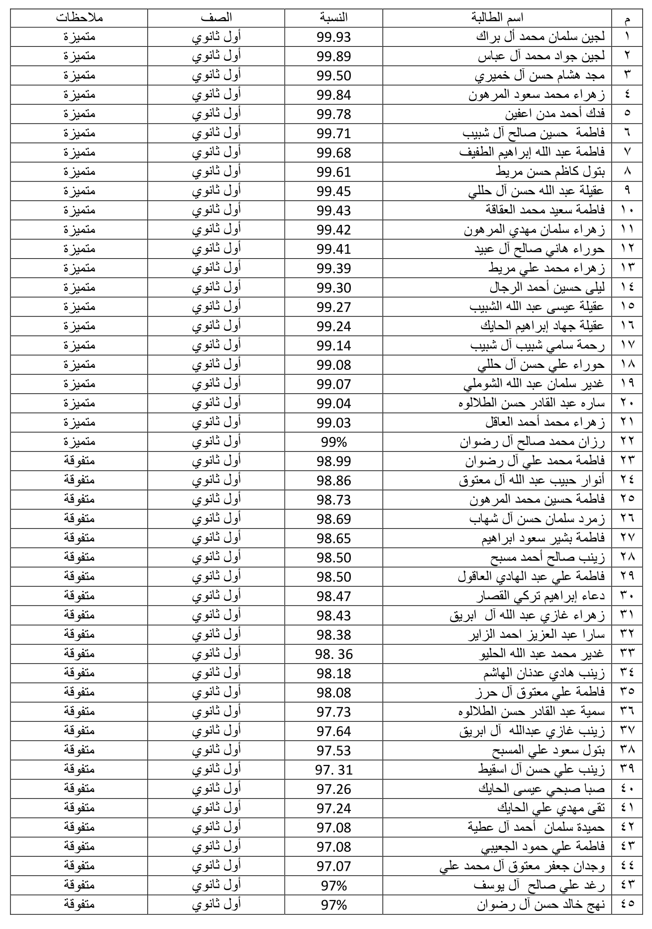 حقق 385 طالب وطالبة من أبناء بلدة أم الحمام نسبة أعلى من 97% للمعدل التراكمي واستحقوا بذلك جائزة التفوق الدراسي بأم الحمام، إنجازاً لمعايير الجائزة التي تم رفعها هذا العام.