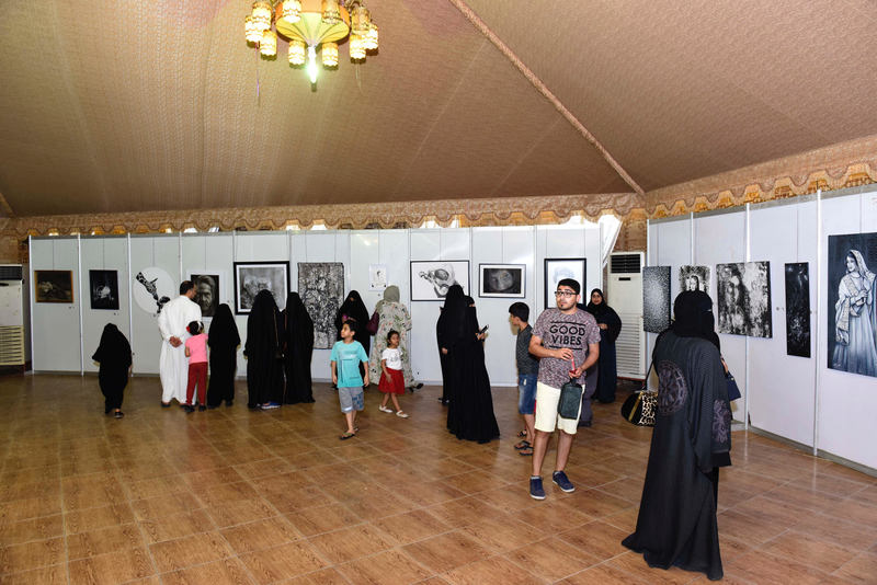 شارك 63 فنان وفنانة تشكيلية في افتتاح معرض ”أبيض وأسود“ بلوحاتهم الفنية التي احتوت على الخامات الرمادية من الرصاص والفحم وأالالوان الاكريلك والزيتية، مختلفين في التعداد والخامات والمقاسات.