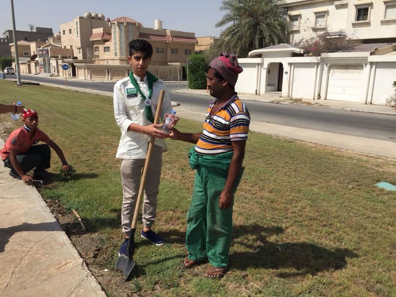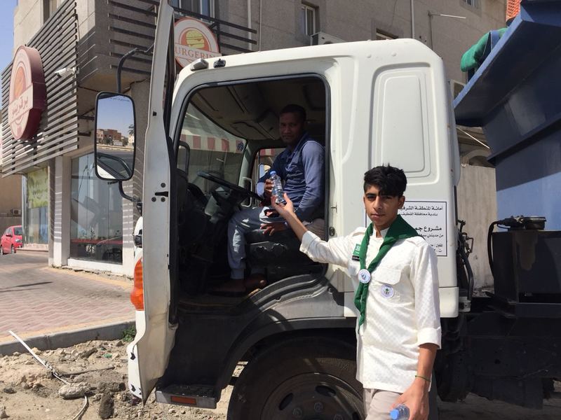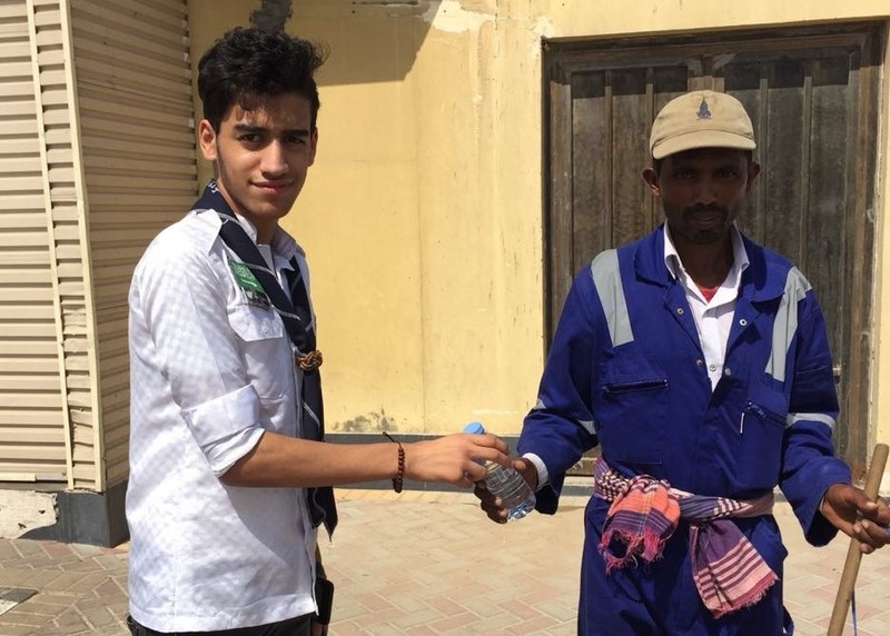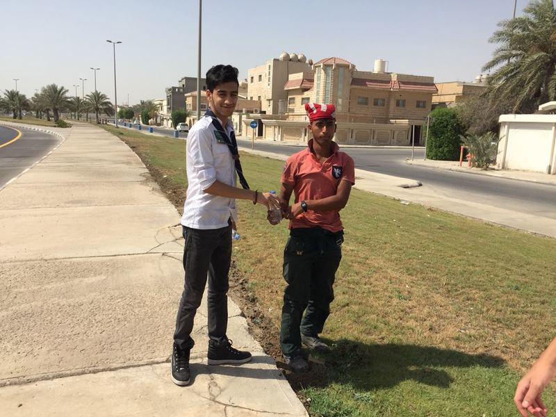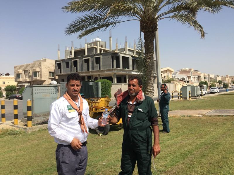 وزع كشافة رسل السلام، يوم أمس الاول، 650 قارورة ماء على العمالة الموجودة في الواجهة البحرية بمحافظة القطيف.