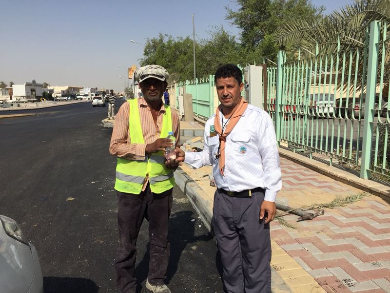”رسل السلام“ يوزعون المياه على العمال في كورنيش القطيف