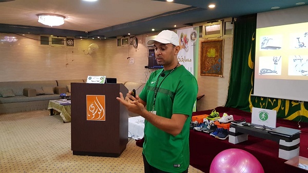 وقدم الناصر للمتسابقين شرح مفصل لتعريف اللياقة البدنية وعناصر اللياقة السبع مشيرًا الى انه من يعرفها يستطيع ان يتطور في ممارسة العديد من التمارين التي تعطي الجسم النشاط والحركة وتحرق السعرات الحرارية.