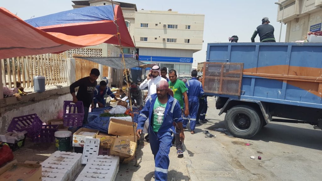 شنت بلدية سيهات التابعة لبلدية محافظة القطيف حملة مداهمة على سوق غير نظامي في سيهات تفعيلاً لمبادرة إزالة مظاهر التلوث البصري والعمل على تحسين المشهد الحضري.