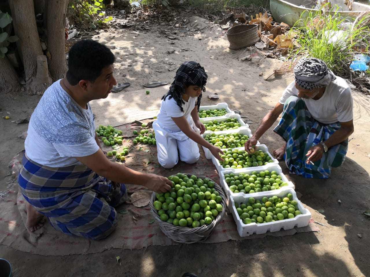 وتزرع في شتلات صغيرة، وتكبر بسرعة تحت أنظار وابتسامات صاحبة البيت التي تنتظر أن تقطف منها حبات الليمون الأخضر الحامض والمسمى محلياً ب «اللومي»، كل ظهيرة ليعصرها صغارها فوق السمك، أو «ايدام الصالونة».