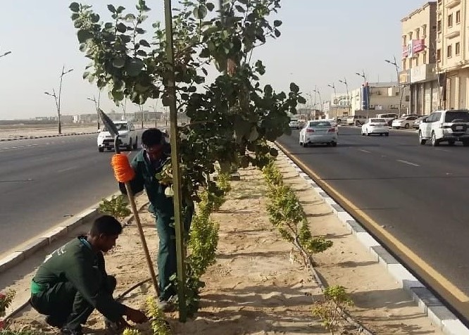 يشار الى ان البلدية بدأت بزراعة الاشجار المحلية في طريق الخليج وبعض الشوارع في المحافظة.