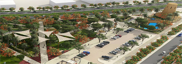 وأشار الى انهيحتوي المشروع على حوالي 94 ألف متر مربع من الحدائق والمتنزهات منها 55 ألف متر مربع مسطحات خضراء مستوحاة من البيئة الزراعية للمحافظة لتجمع بين أشجار النخيل والشجيرات الملونة بعدد 200 شجرة نخيل و500 شجرة ملونة، تحوي بين طياتها أماكن للأنشطة الترفيهية وملاعب الأطفال في الهواء الطلق.