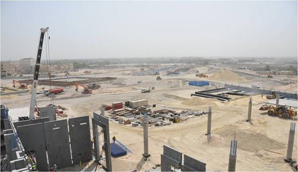 وأكد الصفيان بأن وتيرة العمل في المشروع متسارعة، بالإضافة الى مضاعفة الجهد بالعمل لزيادة معدل الإنجاز عن طريق زيادة كافة الموارد والعمل على مدار الساعة وزيادة عدد الموردين لتسريع الإنتاج وتركيب عناصر الخرسانة سابقة الصب من أجل إنجاز المشروع.