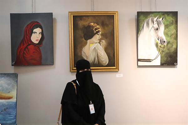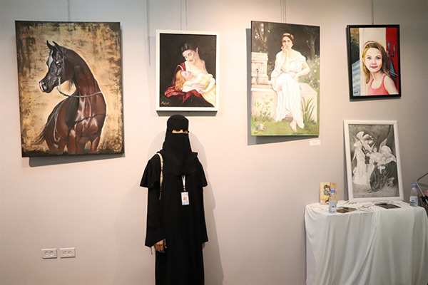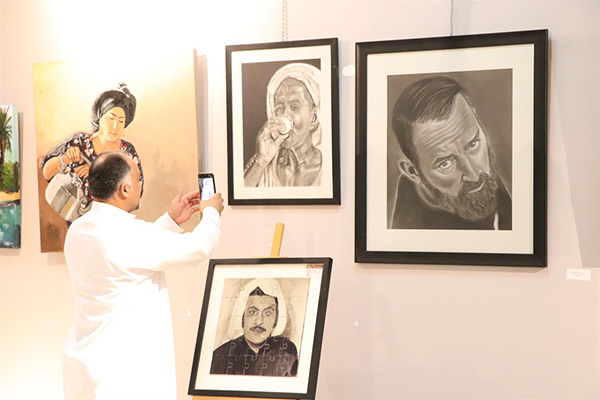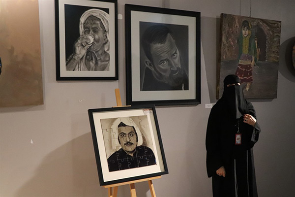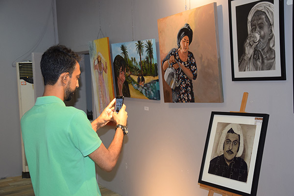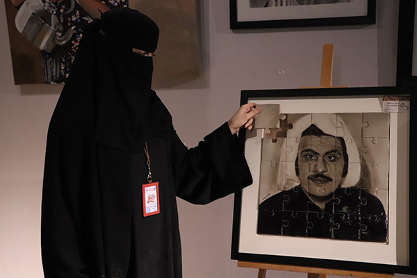 ومن جانب آخر شاركت الفنانة بمجموعة لوحات تشكيلية في المعرض، باستخدام ألوان الفحم والزيتي والإكلريك، وإحدى لوحاتها للفنان عبدالحسين عبدالرضا، نحتتها بعد وفاته على شكل قطع بوزل.