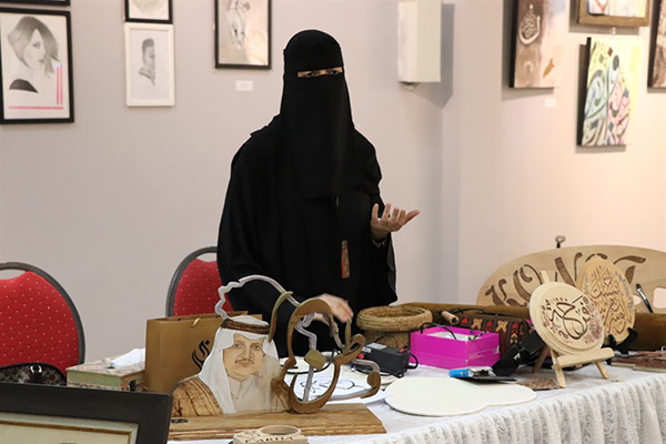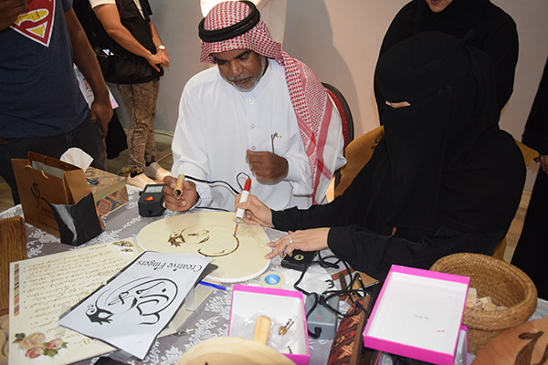 التشكيلية آل سالم تجتذب الصغار والكبار بـ ”الحرق على الخشب“