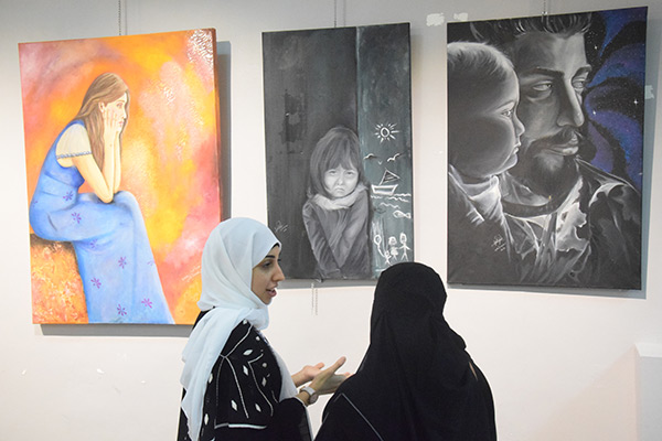 وعن مشاركة ابنتاها في المعرض فاطمة ومريم اللويم، ذكرت انهن مارستا الرسم منذ سنتين، بعد التشجيع والانضمام للقروب والاحتكاك بالفنانين، وبالإعتماد على مشاهدة الدروس التعليمية في اليوتيوب فقط.