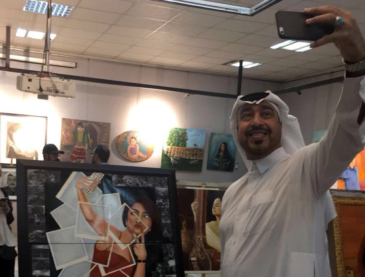 وقالت ماجدة الجشّي في المعرض الذي استضافته لجنة الفنون التشكيلية والخط العربي، في جمعية الثقافة والفنون بالدمام والذي اختتم أول أمس: ”ان الكثير من الزوار قد تفاعلوا مع لوحة“ هوس السلفي" في محاولة فتاة حسناء لأخذ لقطة سلفي، وحولها انتشرت صور لمجانين السلفي والذين ذهبت أرواح بعضهم لأجلها، لافتة الى الوضعيات والأماكن الغريبة التي أُخذت تلك اللقطات فيها.