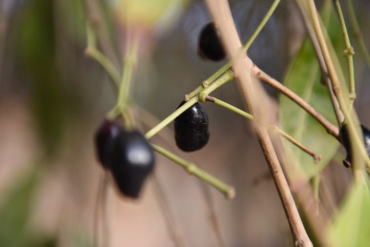 وأضاف أن الثمار كاملة النضج تبدأ في الظهور بين شهري مايو ويونيو، وتوت تلك الثمار بيضاوي الشكل، شكله أخضر عند بداية الثمار، ثم يتحول إلى اللون القرمزي عندما تنضج، ثم يتحول إلى اللون الأسود عند تمام النضج، والثمار ذات مذاق حلو ولذعة حامضية.