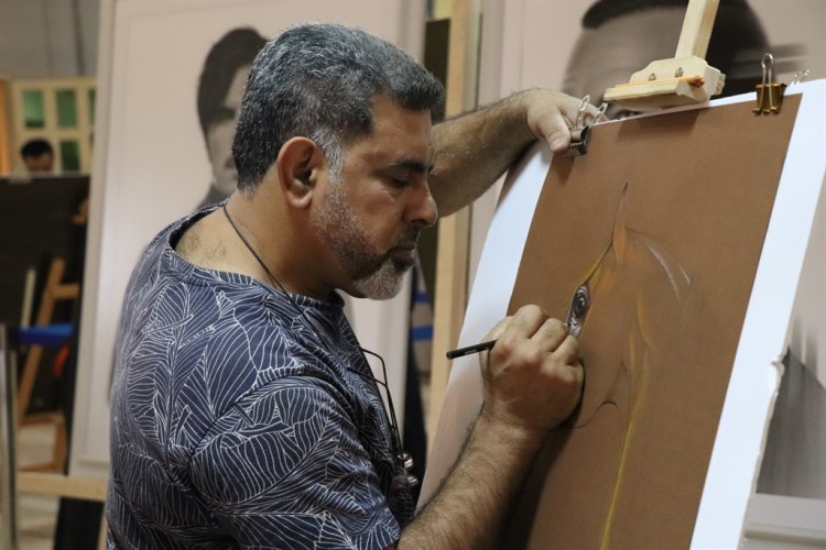 وذكر بعض عاداته اليومية للمحافظة على مهارة الرسم والمستوى، في الممارسة شبه اليومية وعدم الانقطاع رغم مشاعل العمل، لافتا الى عرض بعض اعماله في مقهى من تصميمه في كورنيش الدمام.
