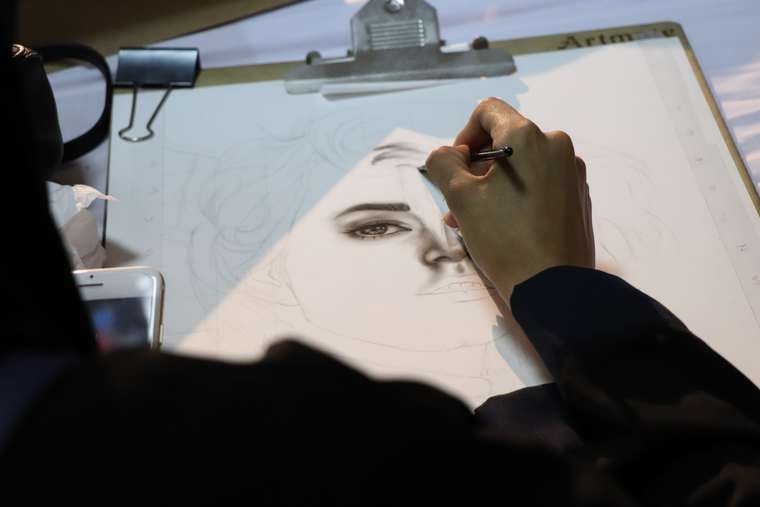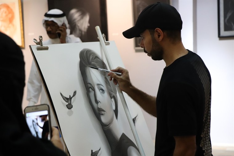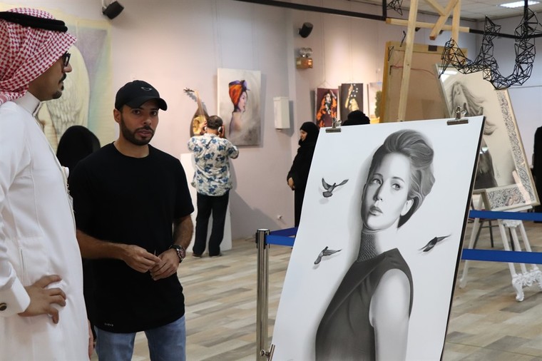 وقدم الفنان علي آل عبيد الرسم المباشر في المعرض، بالإضافة إلى عرضه لأربع لوحات في فن البورتريه مفضّلا إستخدام ألوان الفحم لما فيها من التحدّي، خاصة في اللوحات الكبيرة والمعروف عنها التبقيع، ”إلا ان التجربة أثمرت عن النجاح“.