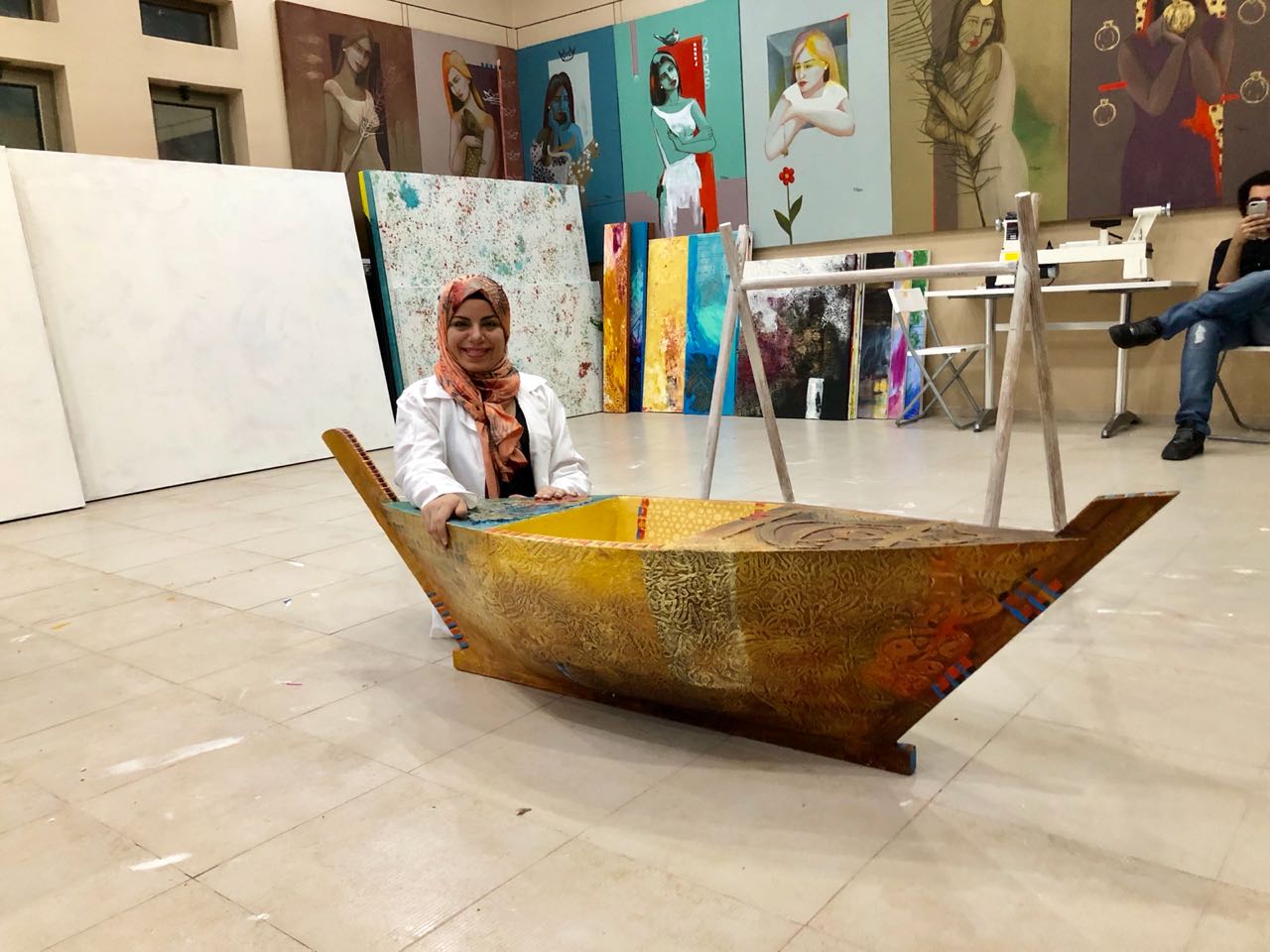 ولفتت إلى دورها كفنانة مشاركة ومتعاونة في تنسيق أنشطة كثيرة للمؤسسة إضافة لدعوة مجموعة من الفنانين والفنانات إلى هذه الفعالية، مبينة أنه سيتم شحن القوارب والاعلان عن الافتتاح بلندن قريبا.