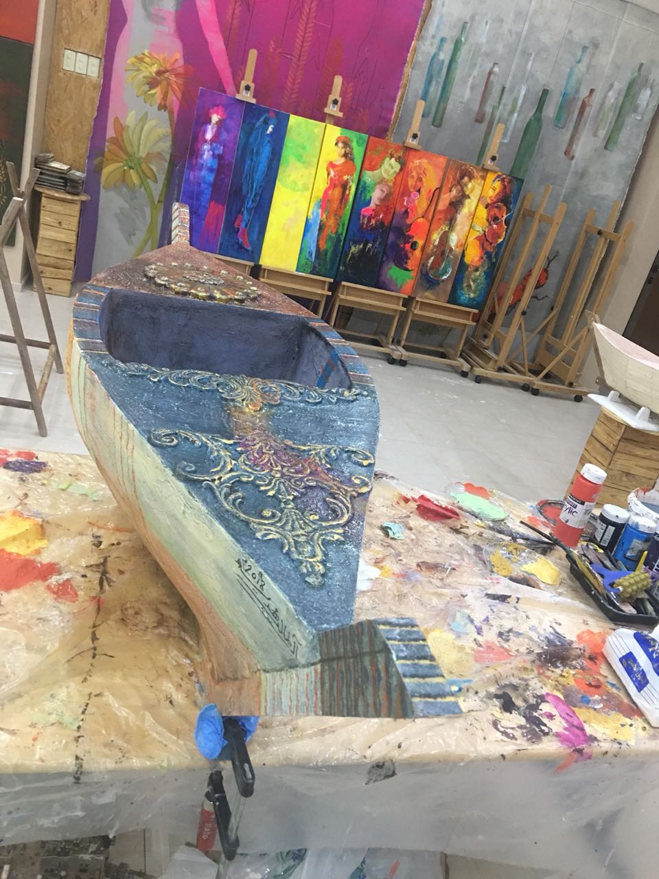 وقد شارك كل فنان بعمل قارب واحد، وأنها وفقت وتم اختيارها لتنفيذ قارب آخر وذلك لاستحسان اللجنة على عملها بالقارب الأول.