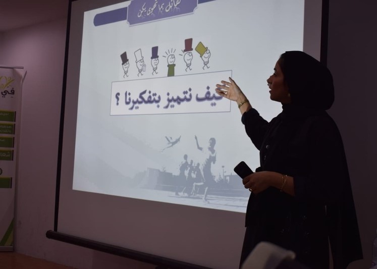 وبدأت الدورة بطرح 8 تساؤلات يتوسطها تمرين للتفكير بكيفية حلها، وبعد الانتهاء من الاسئلة تحدثت ”السلمان“ عن التمرين والغرض منه وكيف ان الشخص يجب عليه البدء بكسر الحواجز والحدود الموجودة لتفكيره ويجب عليه الانطلاق بالتفكير للوصول للتميز والابداع.