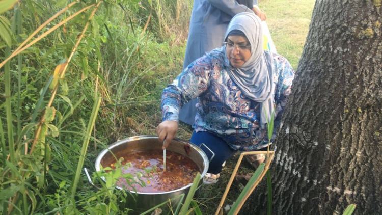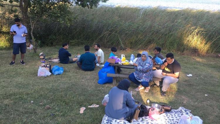 وأشارت إلى أن طهيهم للكبسة كان تحت موقد من الغاز الصغير بمعاونة الأهل والأصدقاء في ثالث أيام العيد في أحد حدائق سبنجة في تركيا، وقالت: ”بعد إن انتهينا من تناول الكبسة، أعددنا الشاي المخدّر على الفحم، فالعيد لايحلو إلا باللّمة وتناول الطعام الشعبي من أيدينا“.