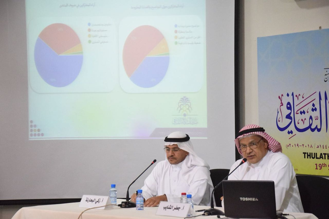 وقال الشايب أن 61% من المشاركين في الاستبيان أن من أهم مجالات تأثير المنتدى هو «تجسير التواصل مع مثقفي الوطن»، وأن 56% يرون أن المنتدى «يساهم في تعزيز حالة النقاش والحوار»، ومثلهم أيضا يرون أن «المنتدى يطرح المواضيع المهمة للمجتمع».
