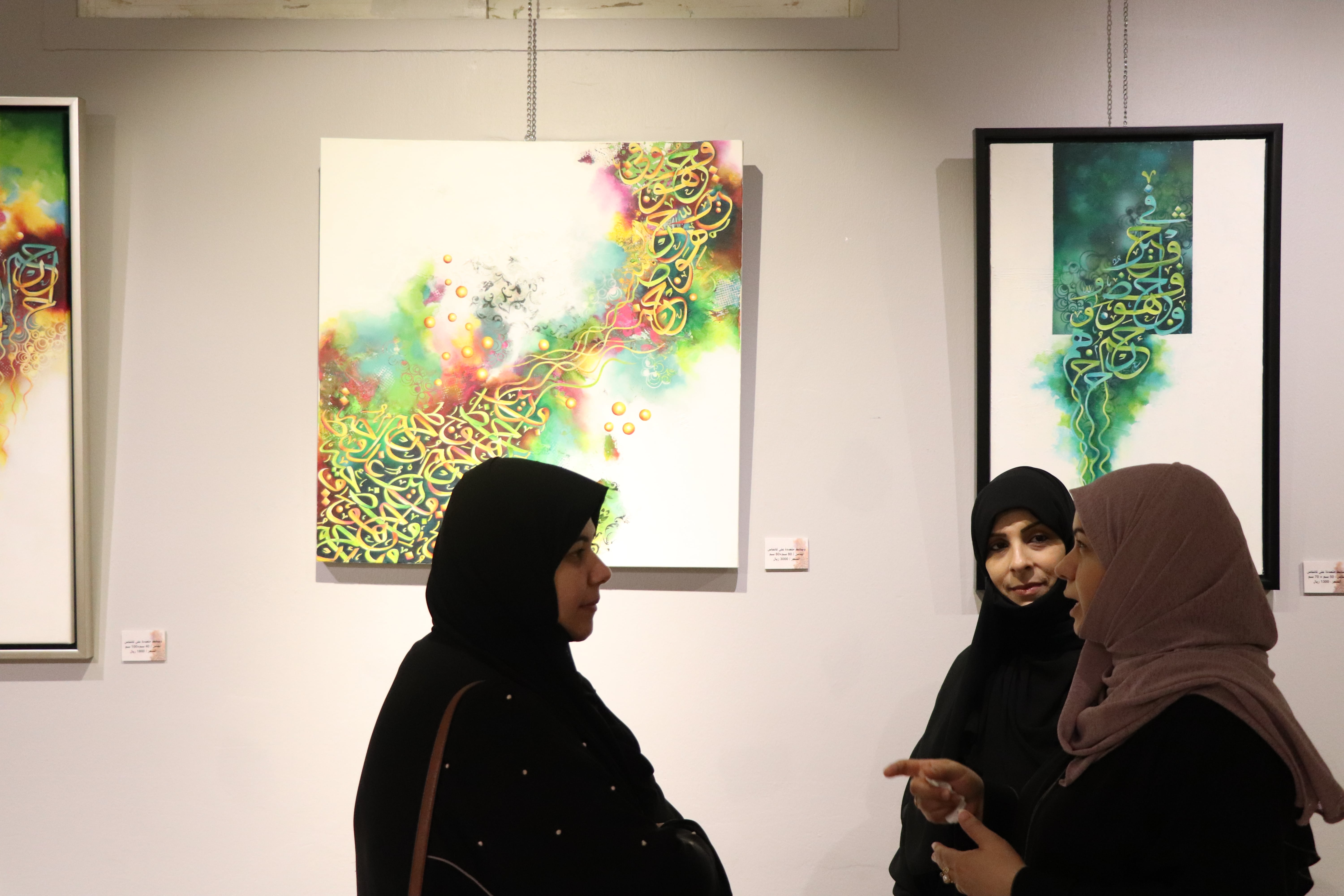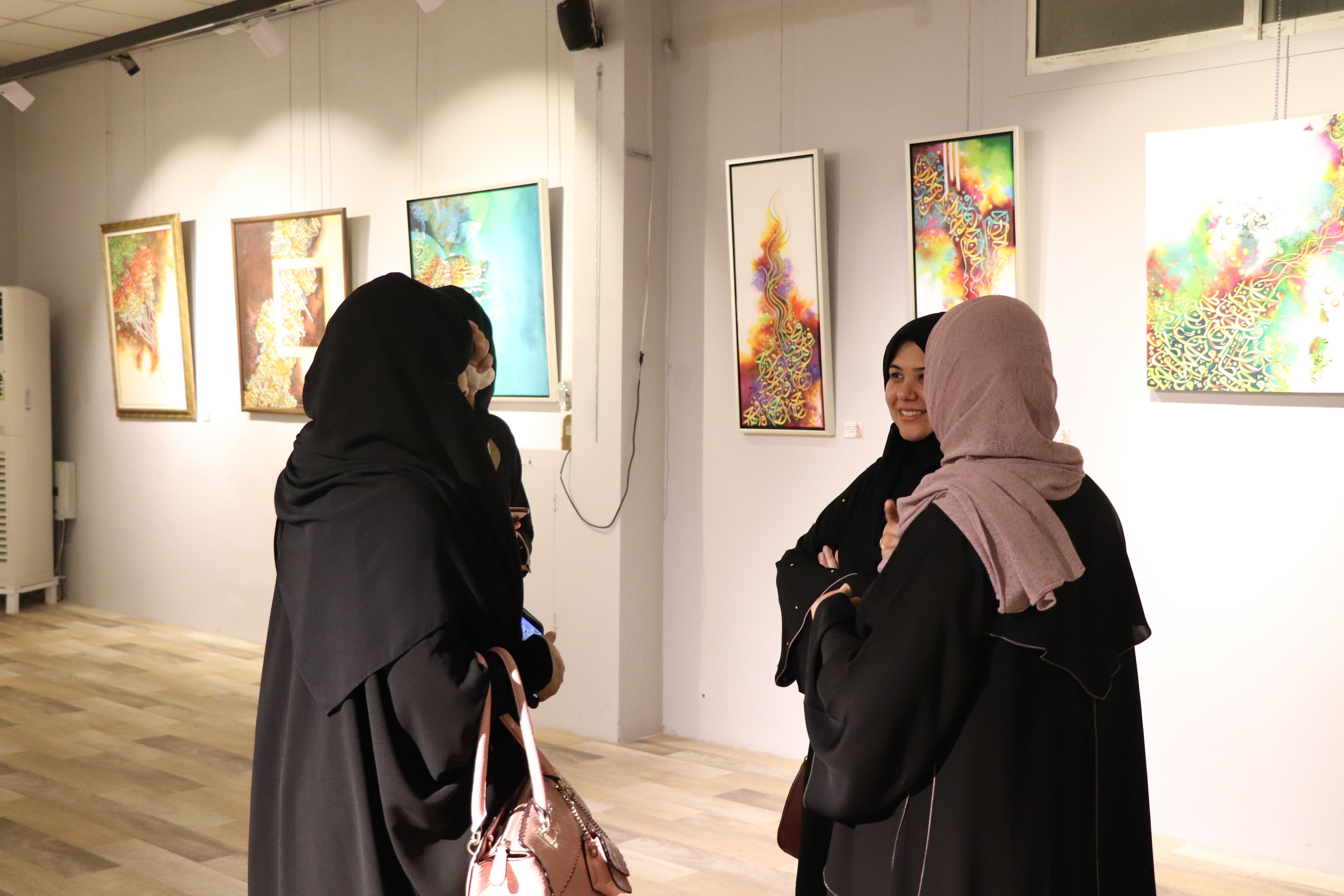 كما كررت الفنانة فاطمة آل مطر الزيارة للمعرض، مبدية إعجابها الشديد بالإخراج اللوني للفنانة ”لا أشبع ولا أمل ّمن النظر الى لوحاتها، لو أجي كل يوم“.