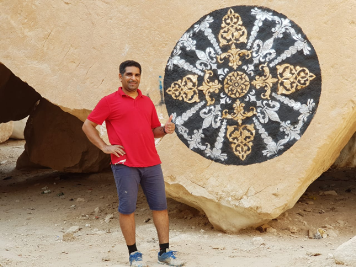 الأحساء.. فنان تشكيلي يرسم أعماله على صخور جبال القارة
