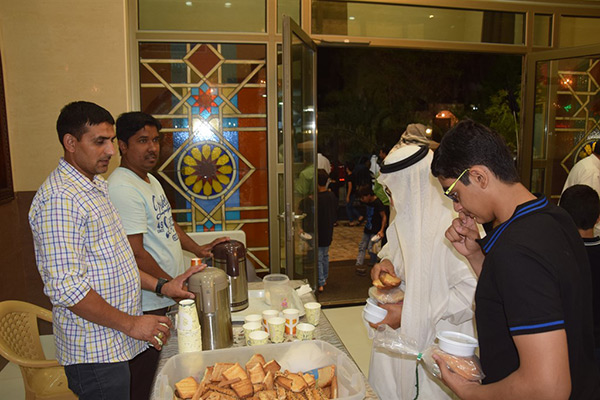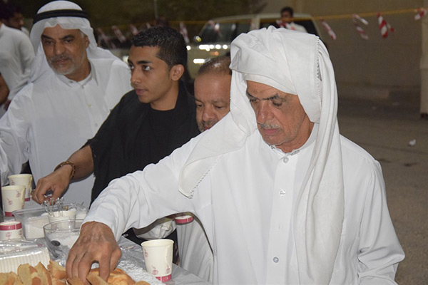 وتشترك مجاميع من الشباب في توزيع الطعام والشراب على المشاركين في المواكب، ويحرص الجميع على تناول شيء من هذا الطعام والشراب تبركا بالمناسبة.
