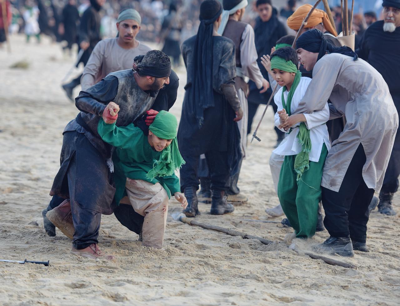 تجدد المشهد العاشورائي في مسرح واقعة الطف التي تقيمه مؤسسة موكب أهل البيت
