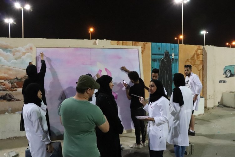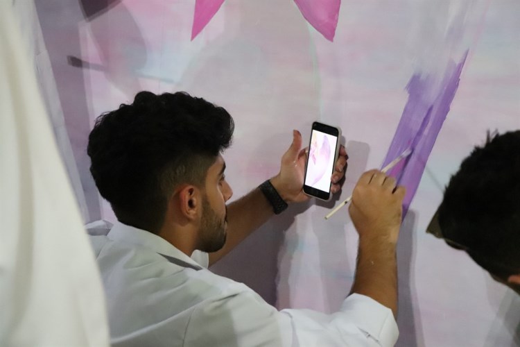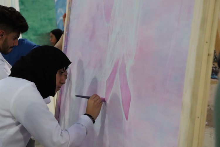 وأعد اللوحة عشرة فنانين من الفريق مساء الجمعة جمعهم حب التطوع والفن لانتاجها، لافتين إلى أنهم سيهدوها لاحدى المستشفيات وتحديدًا قسم السرطان.