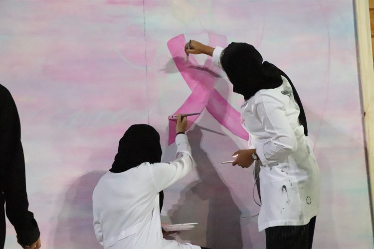 وبينت أن فكرة اللوحة جاءت بالتزامن مع شهر اكتوبر الذي يتضمن اليوم العالمي لسرطان الثدي، حيث أرادوا تقديم شيء مختلف للمرضى في قسم السرطان بإحدى المستشفيات.