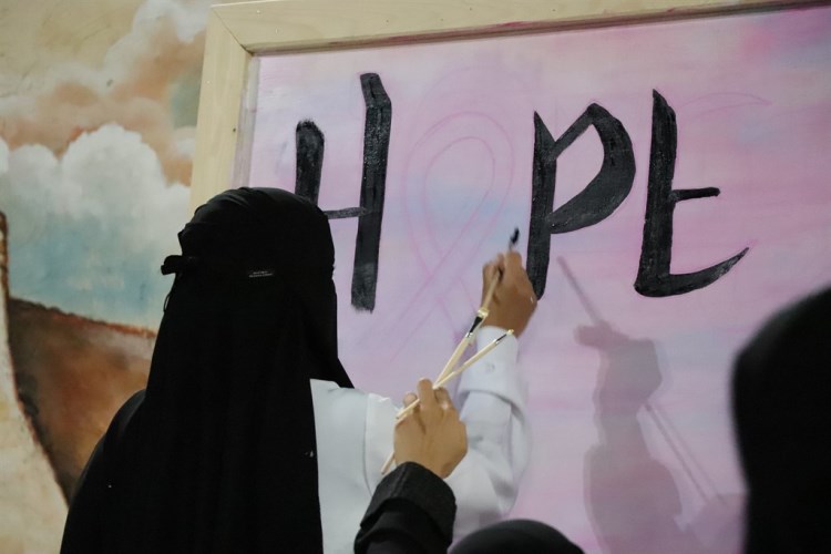 اختار فريق "All hand”التطوعي أن يهدي مرضى سرطان الثدي لوحة معبرة لزرع الأمل في نفوسهم، مستغرقين في اعدادها مايقارب الخمس ساعات على شاطىء كورنيش القطيف.
